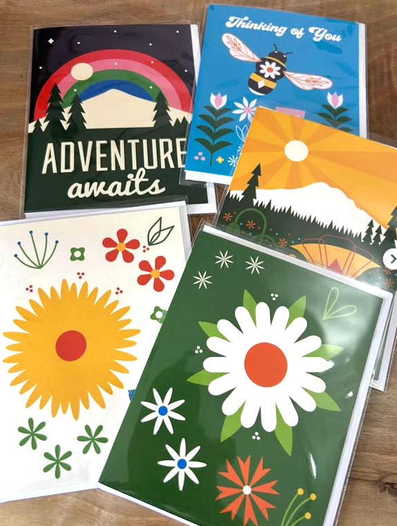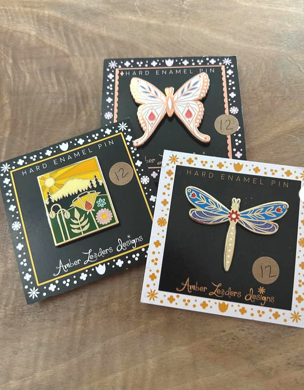 Amber’s unique mid-century modern aesthetic lends a soft whimsy to her definitive designs. Ranging from stickers to notepads to pins, her pieces are bestsellers time and time again.